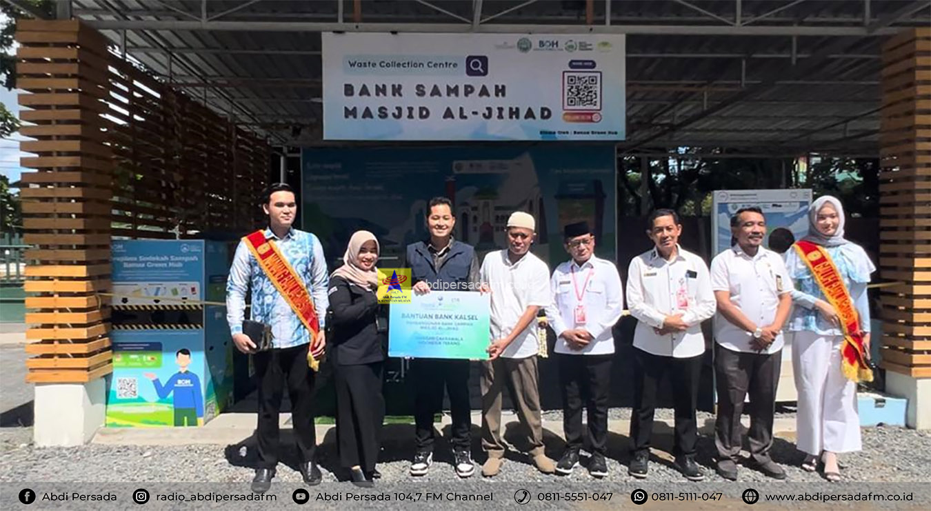 Banjarmasin – Bank Kalsel melalui Unit Usaha Syariah (UUS) memberikan bantuan Pembangunan Bank Sampah di Mesjid Al Jihad Banjarmasin. Penyerahan dilakukan Kepala Bank Kalsel Cabang Syariah Banjarmasin, Yuanita Evayanti kepada Founder Banua Green Hub, Dendy Primanandi bersama Perwakilan Pengelola Masjid Al-Jihad Banjarmasin, Taufik Hidayat.