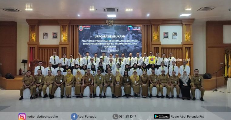 BANJARBARU – Sebanyak 40 orang mengikuti Pelatihan Kepemimpinan Administrator (PKA) Angkatan IX di Lingkup Pemerintah Provinsi Kalimantan Selatan Tahun 2024, upacara pembukaan kegiatan tersebut dilaksanakan di Aula Kampus I Badan Pengembangan Sumber Daya Manusia Daerah (BPSDMD) Provinsi Kalsel di Banjarbaru, Senin (20/5).