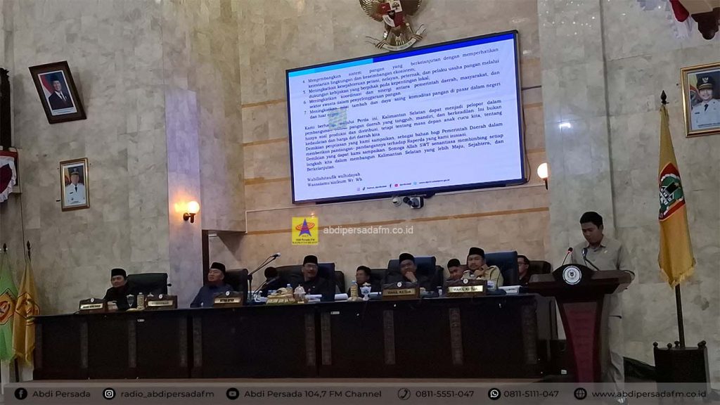 Sementara itu, Komisi II diwakili oleh anggota Sadam Husin Naparin, yang menjelaskan bahwa Raperda tentang Penyelenggaraan Pangan disusun untuk mengatasi masalah ketahanan pangan dan ketimpangan distribusi di Banua.