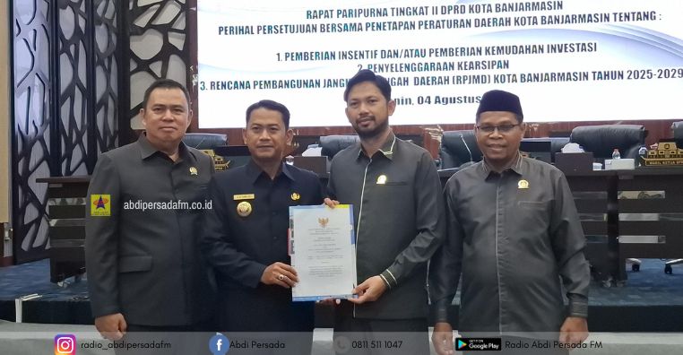 “Setelah pengesahan ini, pemko dan legislatif Banjarmasin, dapat bersama-sama mewujudkan membangun Banjarmasin maju dan sejahtera,” tutupnya