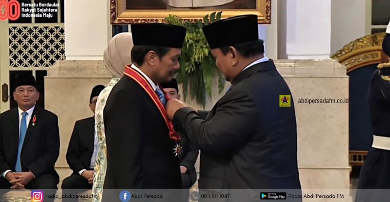 Penghargaan Bintang Mahaputera Pratama yang diberikan kepada almarhum Abdussamad Sulaiman, disematkan Presiden RI Prabowo Subianto kepada sang anak, yakni Hasnuryadi Sulaiman yang saat ini menjabat Wakil Gubernur Kalsel, didampingi istri drg. Ellyana Trisya.