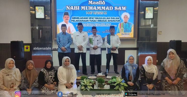 Peringatan Maulid Nabi Muhammad SAW kali ini mengangkat tema Meneladani Sifat Rasulullah Dalam Pelaksanaan Tugas Sebagai Aparatur.