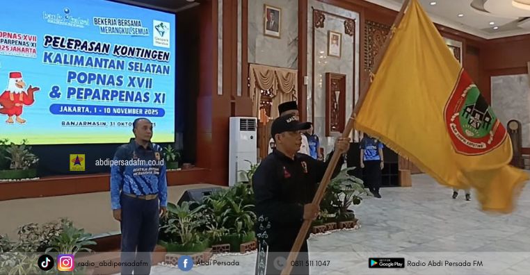 BANJARMASIN – Gubernur Kalsel Muhidin diwakili Kepala Dinas Kepemudaan dan Olahraga (Dispora) Kalsel Pebriadin Hafiz, secara resmi melepas Kontingen Kalsel, untuk mengikuti Pekan Olahraga Pelajar (POPNAS) serta Pekan Paralimpik Pelajar (PEPARPENAS) Tahun 2025 di Jakarta. Prosesi pelepasan digelar di Gedung Mahligai Pancasila, Jumat (31/10) sore.