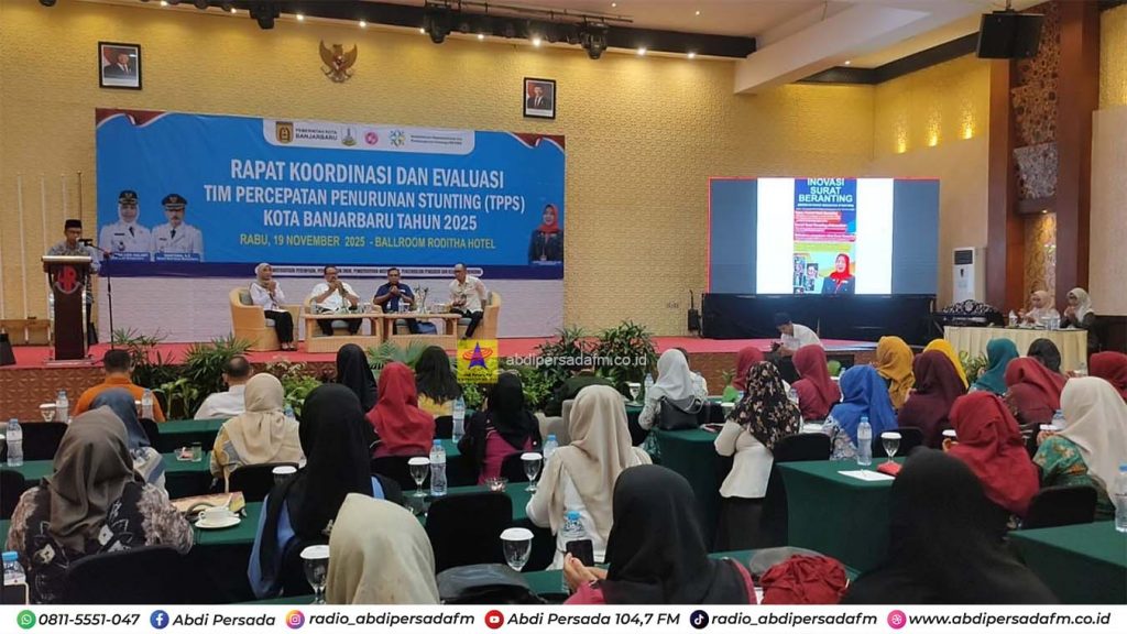 Banjarbaru – Pemerintah Kota Banjarbaru, menggelar Rapat Koordinasi dan Evaluasi Tim Percepatan Penurunan Stunting (TPPS) Kota Banjarbaru Tahun 2025, di salah satu hotel berbintang di Banjarbaru, Rabu (19/11).