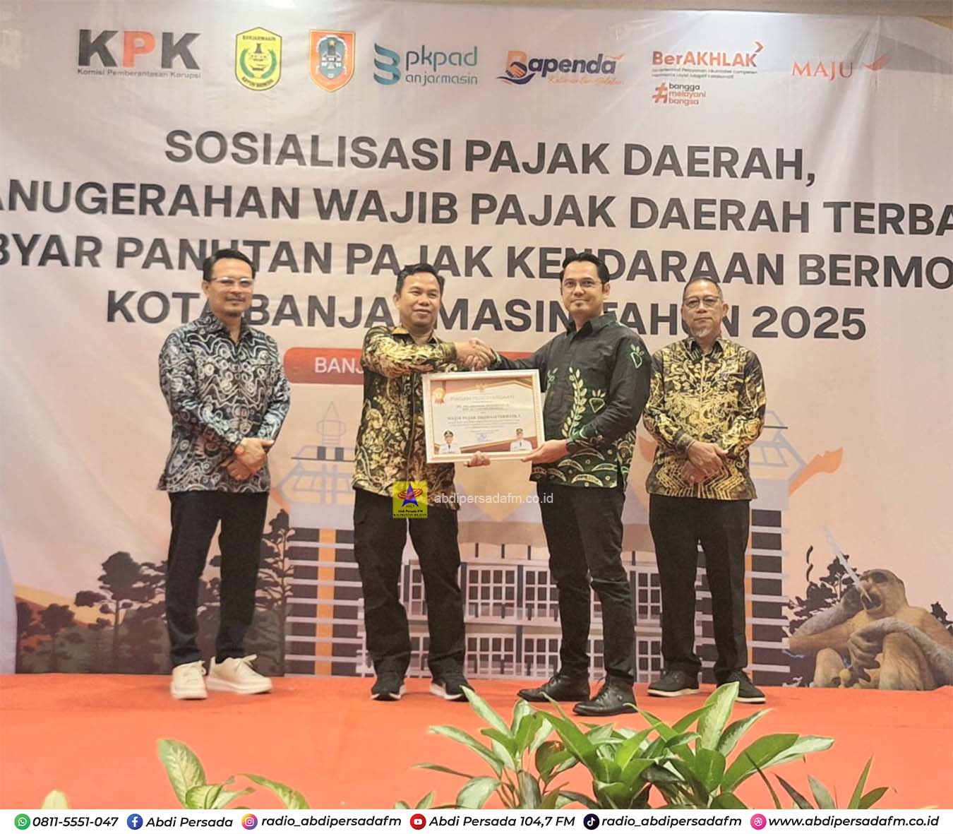 Penghargaan bergengsi ini diberikan kepada instansi dan pelaku usaha yang dinilai berkontribusi besar terhadap Pendapatan Asli Daerah (PAD) melalui kepatuhan administrasi, ketertiban pembayaran, serta pelaporan pajak daerah yang transparan.