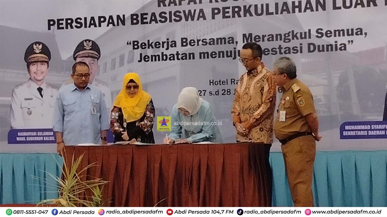 Penandatanganan dilakukan saat pembukaan Rapat Koordinasi Persiapan Beasiswa Perkuliahan Luar Negeri di Banjarmasin, Selasa (27/1).