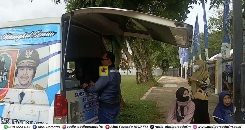Banjarmasin – UPPD Samsat Banjarmasin 2, menghadirkan layanan Samsat Keliling (Samkel) Pembayaran Pajak Kendaraan Bermotor, di Pasar Wadai Ramadan Banjarmasin, kawasan Kantor Gubernur di Banjarmasin.
