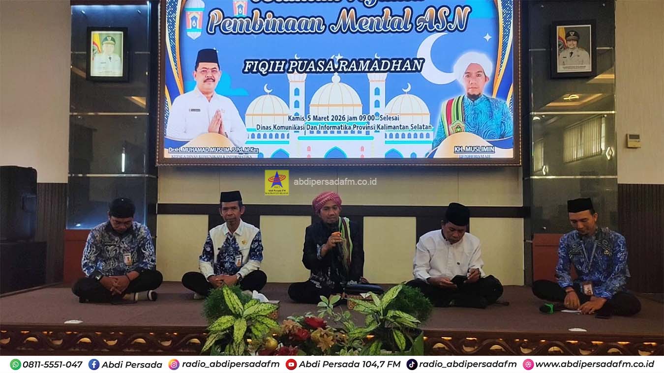 Banjarbaru – Dinas Komunikasi dan Informatika (Diskominfo) Provinsi Kalimantan Selatan, kembali menggelar ceramah agama dalam rangka pembinaan mental spiritual Aparatur Sipil Negara (ASN), di Aula Diskominfo Kalsel, Banjarbaru, Kamis (5/3).