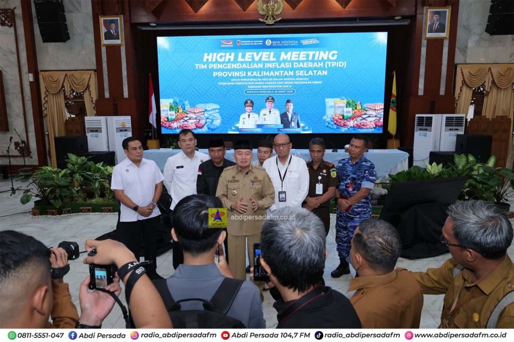 Banjarmasin – Gubernur Kalimantan Selatan, Muhidin, memimpin langsung High Level Meeting (HLM) Tim Pengendalian Inflasi Daerah (TPID), sebagai upaya pengendalian inflasi untuk menjaga stabilisasi pasokan dan harga pangan hari besar keagamaan (HBK), pada Senin (16/3), di Mahligai Pancasila Banjarmasin.