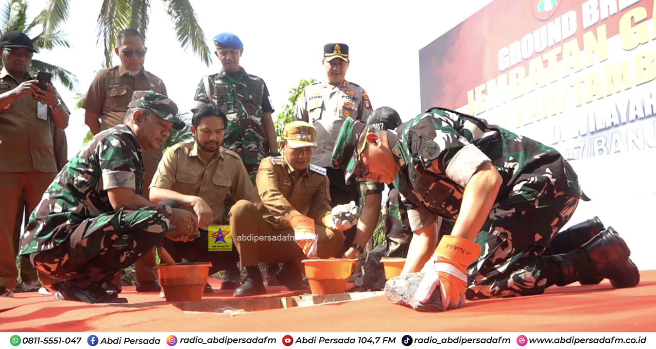 Banjarmasin – Sinergi antara TNI Kodim 1007 Banjarmasin dan Pemerintah Kota Banjarmasin, kembali diwujudkan melalui aksi nyata pembangunan infrastruktur. Yaitu berupa pembangunan Jembatan Garuda di Kelurahan Basirih, Senin (6/4). Pembangunan ditandai dengan prosesi peletakan batu pertama Jembatan Garuda, yang menjadi bagian dari program pembangunan serentak di wilayah Kodam Tambun Bungai.