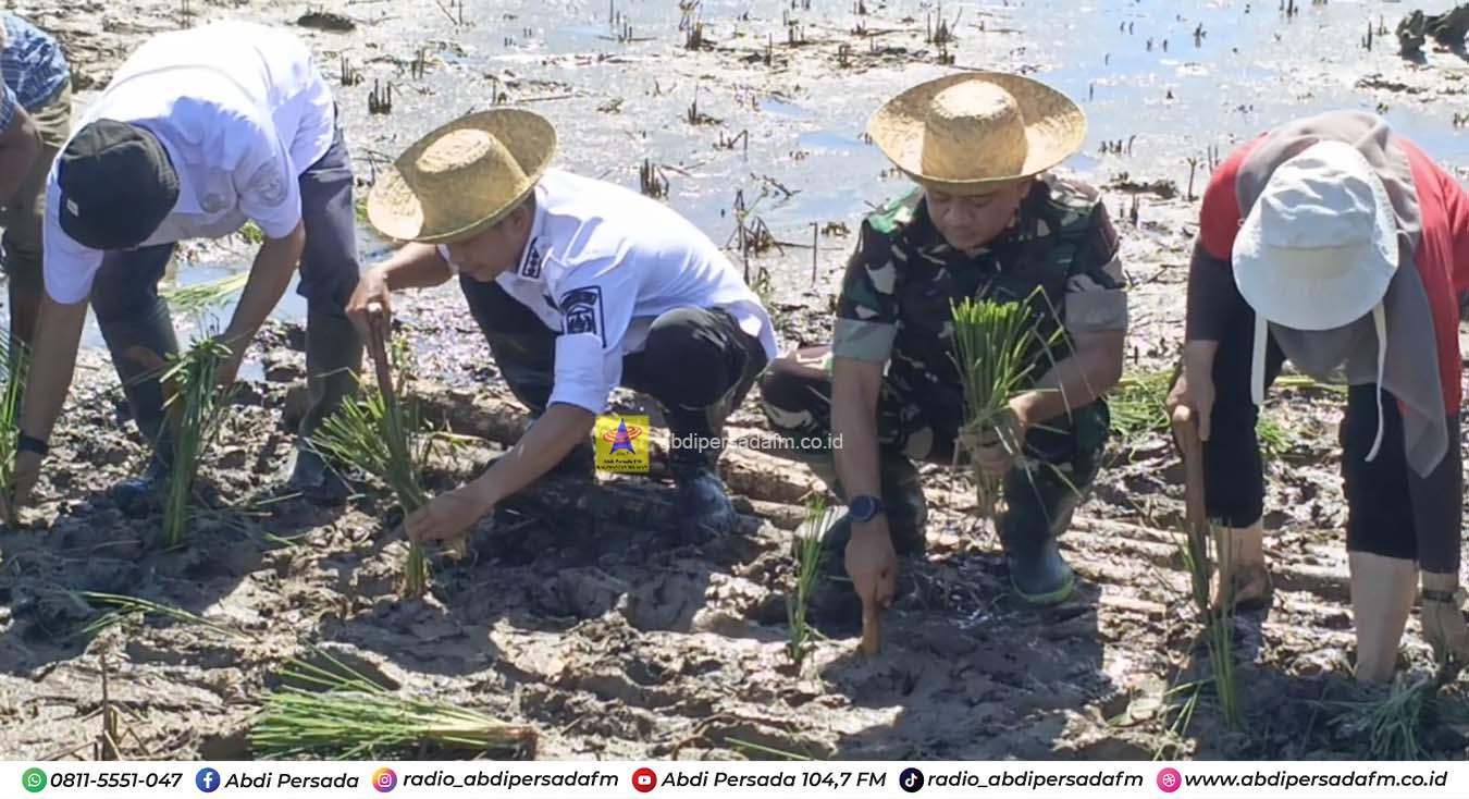 Banjarmasin – Pemerintah Kota Banjarmasin melalui Dinas Ketahanan Pangan Pertanian dan Perikanan (DKP3), melaksanakan penanaman padi perdana, di kawasan Sungai Andai, Kecamatan Banjarmasin Utara, Rabu (8/4). Tanam padi dimulai Wali Kota Banjarmasin Muhammad Yamin, didampingi Dandim 1007 Banjarmasin Kolonel Slamet Riyadi, serta Kepala DKP3 Banjarmasin Yuliansyah.