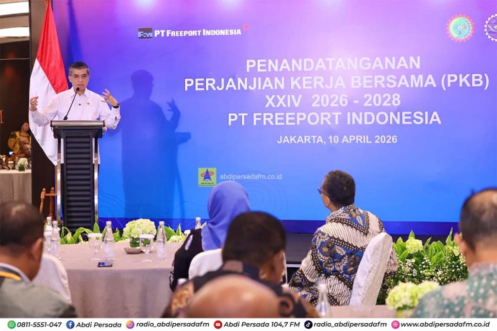 Pernyataan tersebut disampaikan Menaker Yassierli, saat menghadiri penandatanganan Perjanjian Kerja Bersama ke-XXIV periode 2026–2028 antara manajemen PT Freeport Indonesia (PTFI) dan tiga serikat pekerja di Jakarta, Jumat (10/4).