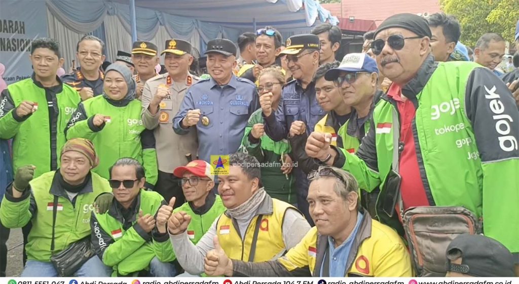 Kemudian, seluruh peserta yang hadir juga mendapatkan bingkisan paket sembako. Penyerahan secara simbolis diberikan kepada lima perwakilan unsur pekerja, termasuk para driver ojol.